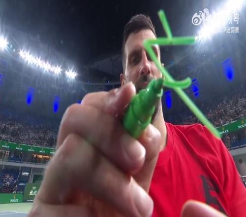 在赢下与贝尔赫斯的比赛后,德约在镜头上写下“福”字,有趣的是,德约写到一半后忘了怎么写,看了准备好的小抄后写完了。